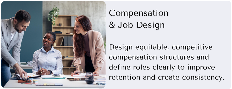 Design equitable, competitive compensation structures and define roles clearly to improve retention, support growth, and create consistency across your organization.
