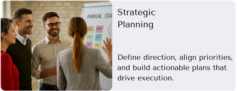 Every organization faces different challenges. My services are designed to bring structure to complexity, strengthen leadership, and turn strategy into results.